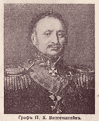 Наша 1 армия, отступая от Дриссы, оставила для прикрытия дорог на Петербурге 1 корпус Витгенштейна силою в 25 тысяч. У Наполеона на левом крыле оставлены были корпуса Макдональда и Удино, всего около 80 тыс. Макдональд с большею частью своего корпуса двинулся против Риги; Удино же с остальными силами должен был наступать против Витгенштейна, стараясь отрезать его от Петербурга; но это французам не удалось. Витгенштейн, действуя весьма искусно, успешно отразил более значительные силы врага. Победами своими у Клястиц и у Головчиц он защитил огромный край к северу от р. Двины и прикрыл пути к столице Империи, Петербургу, и к древнему русскому городу, Пскову.