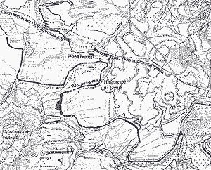 Вернемся к «Крокам Мутона». Судя по ним, о крайнем левом фланге русских французы ничего не знали. Все свидетельства о том, что Наполеон будто бы наблюдал Утицу с некоей горы (это могла быть только гора Каменка) являются позднейшим вымыслом. О деревне Утица французам не было известно, нет и следов знания о направлении Старой Смоленской дороги – она не отмечена. Только отмечен Утицкий лес, и нет никаких признаков, никакого намека на путь в глубокий обход русской позиции. Выходит, что Понятовский и его корпус были посланы в тыл русским у Семеновского наугад, только потому, что явно неверная «карта Водонкура» сулила какую-то перспективу такому движению.