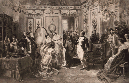 Коленкур на последнее сомнение Александра дал утвердительный ответ: вел. кн. Анна остается верна вере своих предков: ей позволено будет иметь при дворце церковь и священника. Тогда выдвигались другие препятствия: молодость и опасность для ее здоровья от раннего брака, а также, что окончательное решение остается за Марией Феодоровной, так как он, Александр, не может вмешиваться в судьбу своих сестер, что противоречило многим его словам, сказанным раньше Коленкуру. Долго Александр тянул свой ответ Наполеону, откладывая его под разными предлогами, и, в конце-концов, ответ, как и следовало ожидать, был отрицательный. Причина отказа: разность веры, молодость Анны Павловны и, наконец, формальное препятствие следующего характера: по кодексу Наполеона разведенному лицу запрещается жениться в течение двух лет после развода. Как же может нарушить это правило император, обязанный стоять на страже закона? Ясно, что этими замечаниями хотели дать Наполеону почетный отказ [2]. Одновременно с переговорами о браке выдали замуж вел. кн. Екатерину Павловну за герцога Ольденбургского, противника Наполеона, рассматривавшего этот брак, как демонстрацию, направленную против него лично. Наполеон терпеливо ждал ответа от Александра, но и его терпение лопнуло от такой выжидательной политики, и когда в государственном совете по предложению Наполеона вторично обсуждался вопрос о втором его браке, то сторонники брачных связей с русским царствующим домом потерпели полное поражение, и австрийская партия торжествовала. Выбор невесты был решен, а согласие, при посредстве Меттерниха, было получено еще раньше, чем от Коленкура был получен отрицательный ответ Александра относительно брачного проекта Наполеона.
