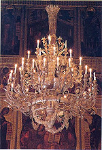 Люстра «Урожай», выплавленная из церковного серебра, награбленного французами в храмах Москвы, брошенного потом при отступлении и собранного русскими войсками. Люстра висит в Успенском соборе Кремля.