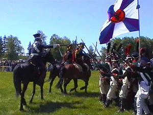 Станете зрителями военно-исторического представления «Сквозь дым летучий...». Перед вами оживут события Бородинского сражения. В бой с атакующими французами вступит русская пехота. К ней на помощь устремятся гусары и уланы. Бой завершится схваткой с французскими артиллеристами и захватом неприятельского орудия.