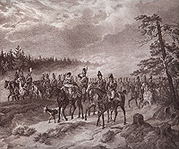 | По дороге на Москву, в окрестностях Бородино, 8 сентября 1812 г. Литография по рисунку А. Адама. 1827-1833 гг. Музей-панорама «Бородинская битва». |