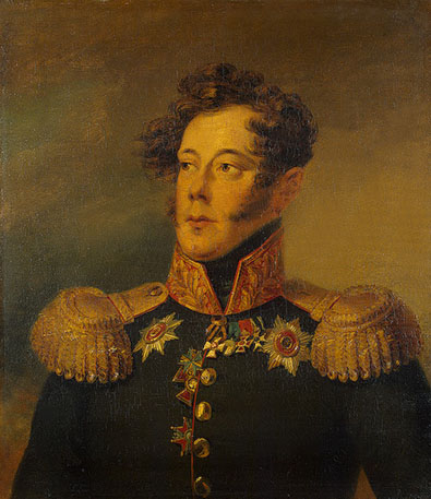Изображен в общегенеральском кавалерийском мундире образца 1814 г. На правой стороне груди звезда ордена Св.Анны 1-й ст., а на левой – крест ордена Св.Георгия 4-го кл., серебряная медаль участника Отечественной войны 1812 г., кресты австрийского ордена Леопольда 3-й ст. и баварского Военного ордена Максимилиана Иосифа 3-й ст., а также звезда ордена Св.Владимира 2-й ст. Из-под борта выступают кресты прусского ордена Пур ле Мерит, ордена Св.Владимира 2-й ст. и польского ордена Св.Станислава.