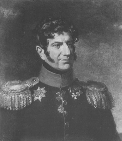 Изображен в общегенеральском кавалерийском вицмундире образца 1814 г. На правой стороне груди звезда ордена Св.Анны 1-й ст., а на левой – крест ордена Св.Георгия 4-го кл., серебряная медаль участника Отечественной войны 1812 г. и бронзовая дворянская медаль в память Отечественной войны 1812 г. Из-под борта выступают кресты ордена Св.Владимира 3-й ст. и прусского ордена Пур ле Мерит.